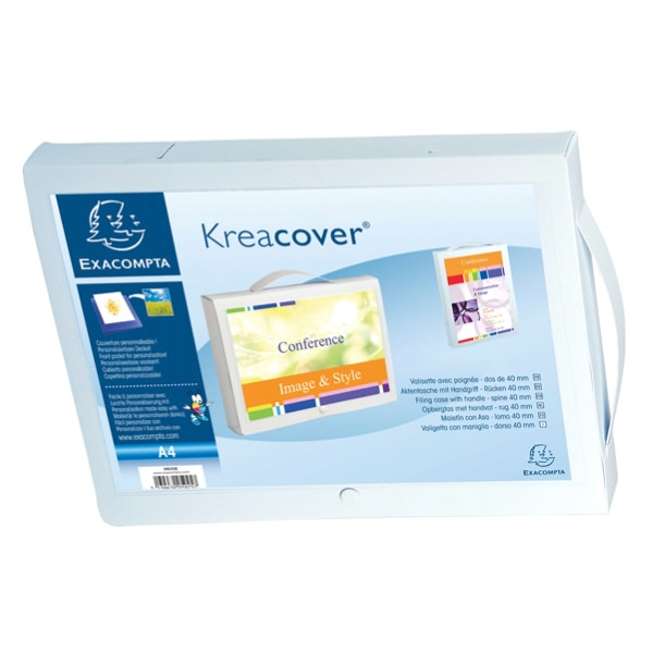 • Cartella bianca in polipropilene con tasca per la personalizzazione sul davanti. Maniglia retraibile sin in orizzontale che in verticale. Formato 24x32cm Dorso 4cm.