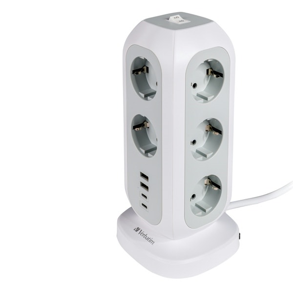 - Multi-Spina a torretta 15 in 1 La Torre di alimentazione Multi-spina di Verbatim offre 11 prese CA, due porte USB-C e due porte USB-A. Grazie al cavo di prolunga di 2 m, offre tutte le prese necessarie per mantenere i dispositivi carichi e operanti a pieno regime. Il design verticale la rende la soluzione ideale per la casa, per la cucina, per l'ufficio o per la scuola,assicurando superfici sgombre e ordinate sulla scrivania o sul pavimento. L'interruttore di accensione/spegnimento posizionato sulla parte superiore della torretta consente di spegnere tutti i dispositivi quando non in uso in una sola operazione così da risparmiare energia.